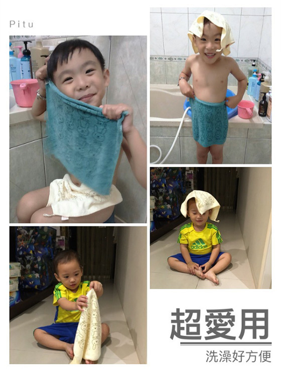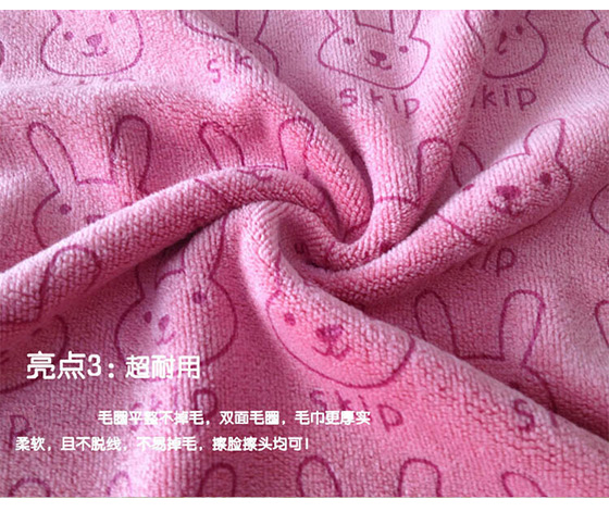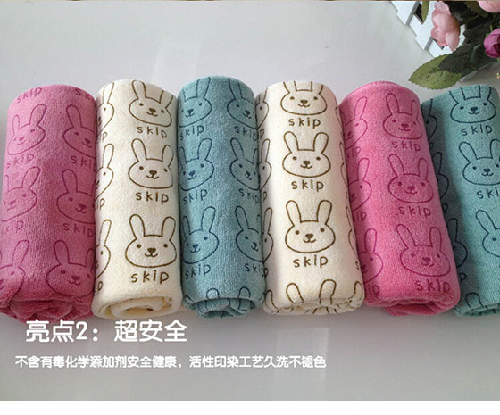 選用超細纖維的吸水面料,洗完澡擦拭也相當好用,可愛兔兔為活性印染工藝,久洗也不會褪色,不含有毒化學劑料使用上更加安全。
